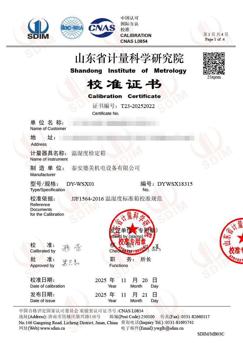 溫濕度檢定箱校準證書(shū) 2025-11-25 本文被閱讀 194 次