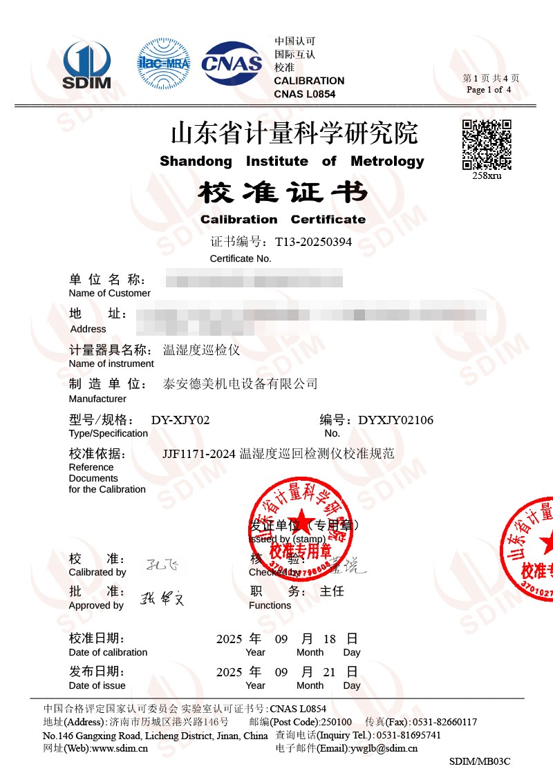 溫濕度巡檢儀校準證書(shū) 2025-9-23 本文被閱讀 619 次