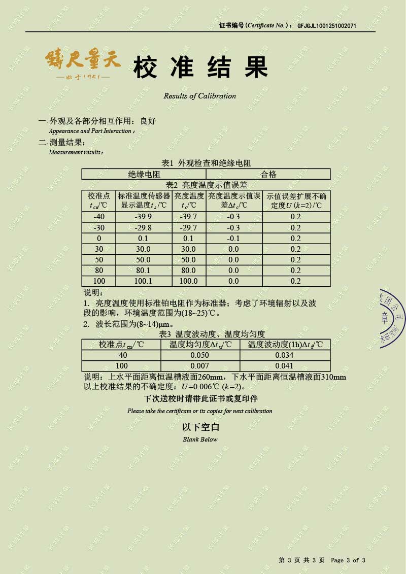 低溫液槽式黑體爐(-40-100℃)校準證書(shū)