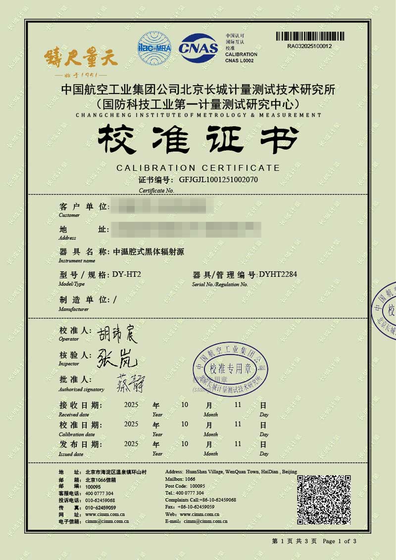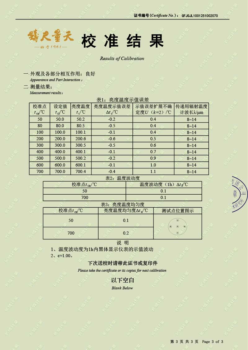 中溫腔式黑體輻射源(50-700℃)校準證書(shū) 2025-10-30 本文被閱讀 24 次