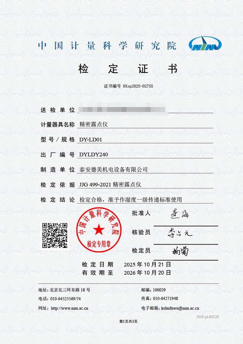 露點(diǎn)儀檢定證書(shū) 2025-10-30 本文被閱讀 53 次