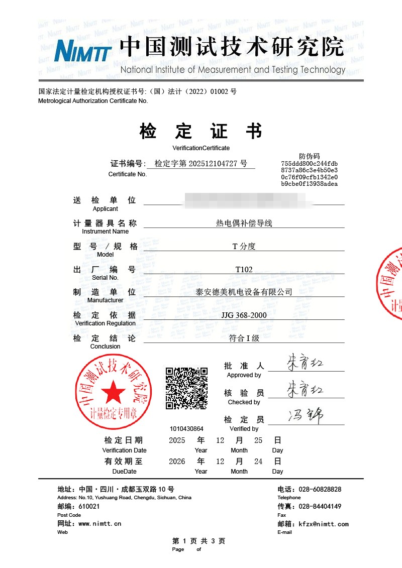 補償導線(xiàn)檢測、檢定、校準報告 2026-1-4 本文被閱讀 100 次