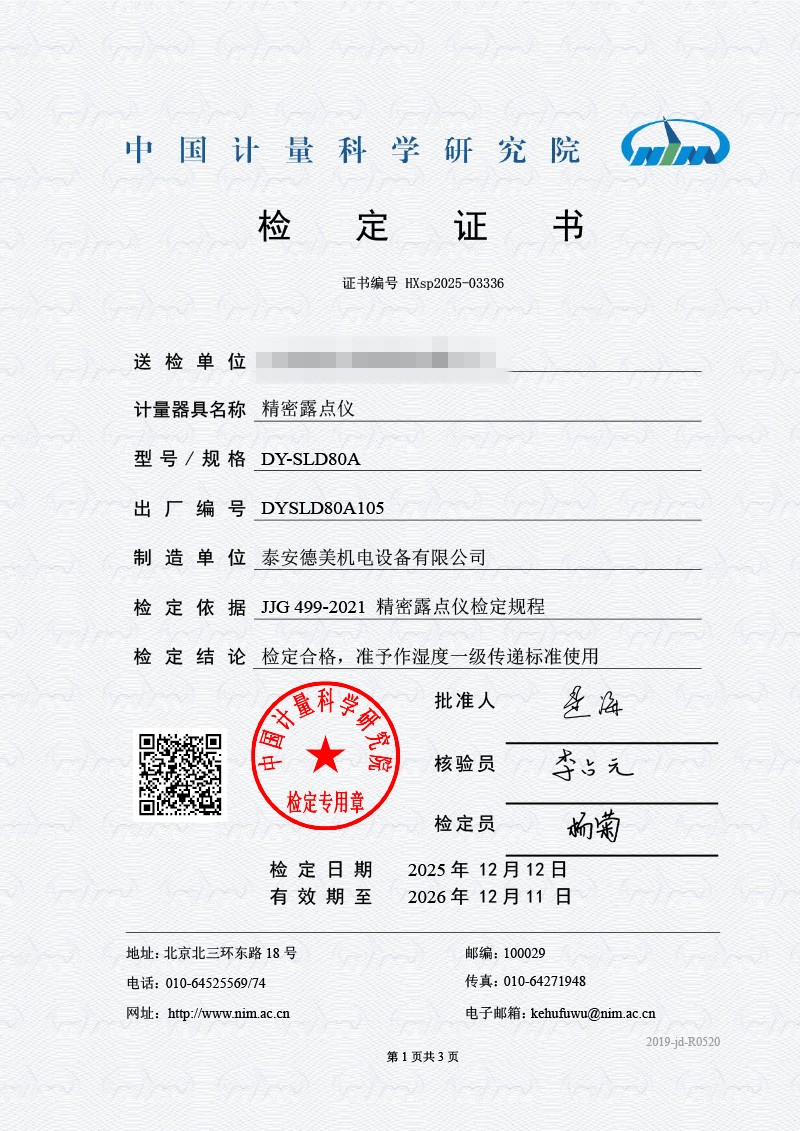 露點(diǎn)儀校準系統校準證書(shū) 2026-1-4 本文被閱讀 136 次