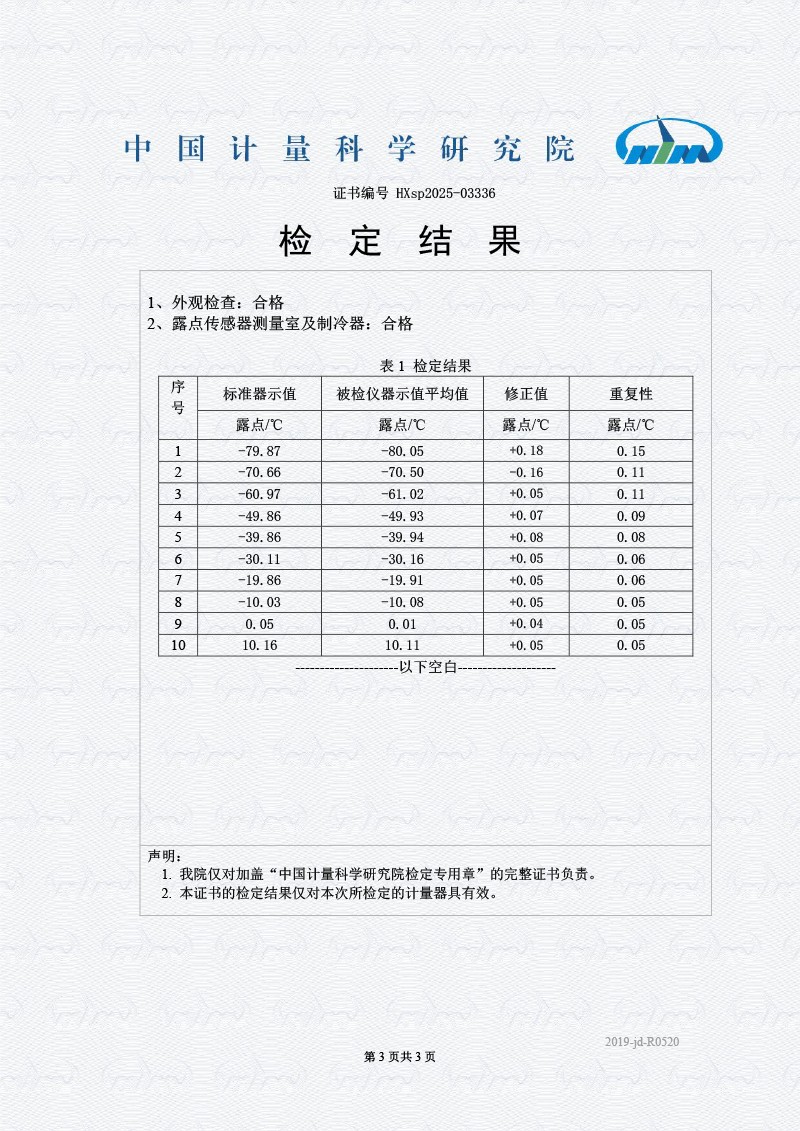 露點(diǎn)儀校準系統校準證書(shū)
