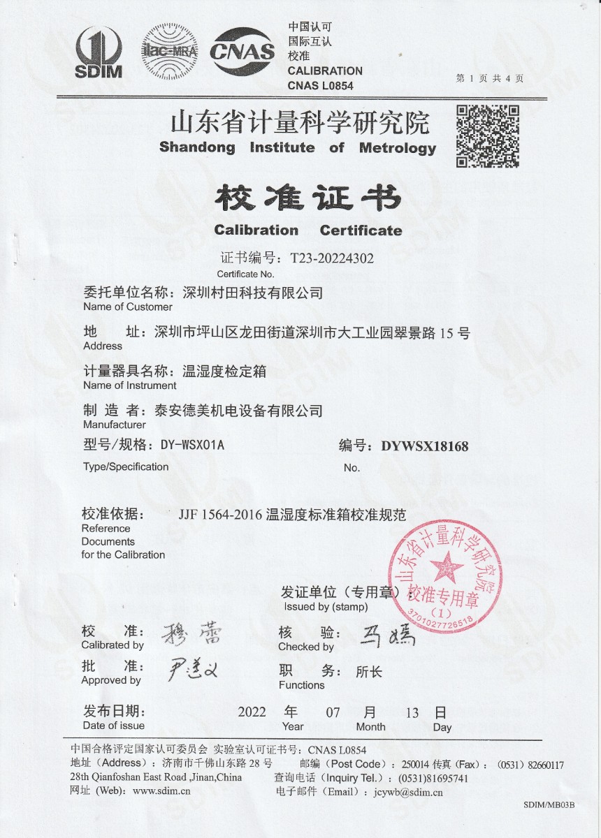 深圳村田科技有限公司-溫濕度檢定箱 2022-8-8 本文被閱讀 12554 次
