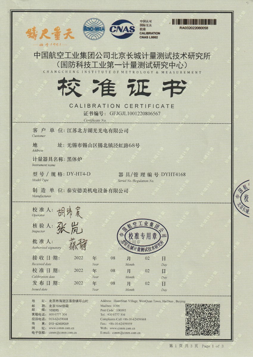 江蘇北方湖光光電有限公司-黑體爐 2022-8-17 本文被閱讀 13182 次