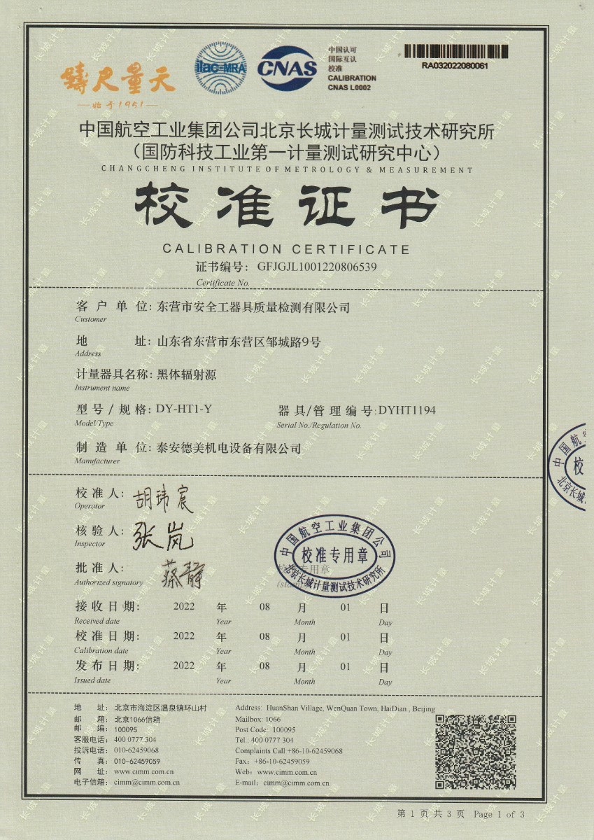 | 上一條:東營(yíng)市安全工器具質(zhì)量檢測有限公司-黑體輻射源DY-HT2 | 下一條:露點(diǎn)儀檢定證書(shū) |
