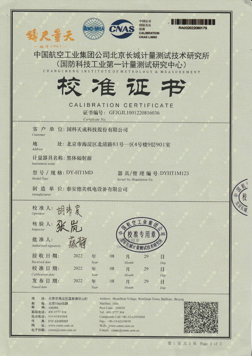 國科天成科技股份有限公司-黑體輻射源 2022-9-5 本文被閱讀 13898 次