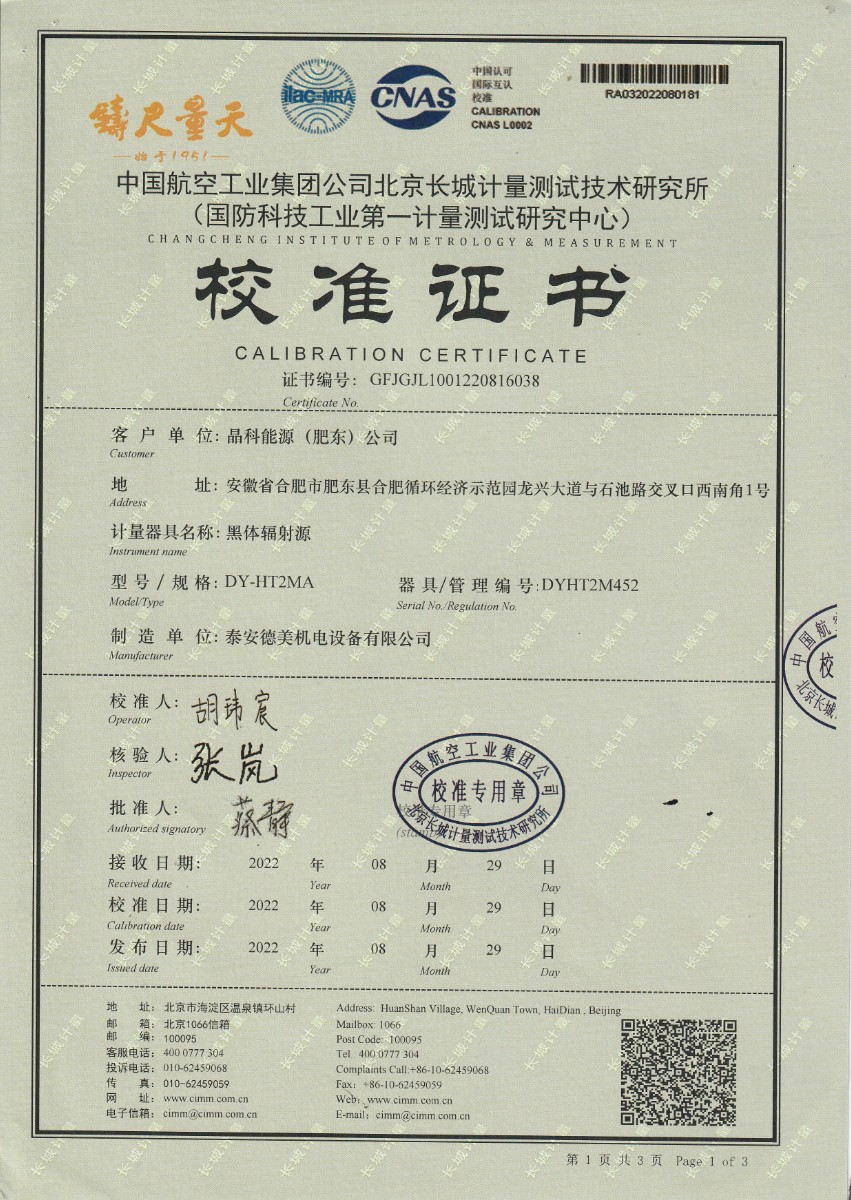 晶科能源(肥東)公司-黑體輻射源 2022-9-5 本文被閱讀 12142 次