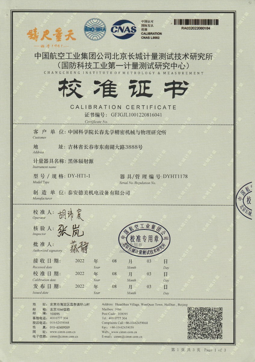 中國科學(xué)院長(cháng)春光學(xué)精密機械與物理研究所-黑體爐DY-HT1-1 2022-9-5 本文被閱讀 11020 次