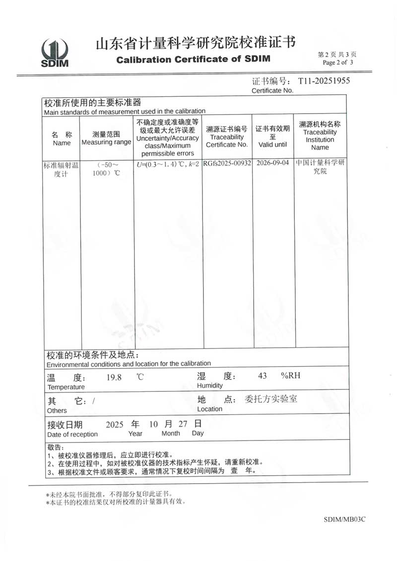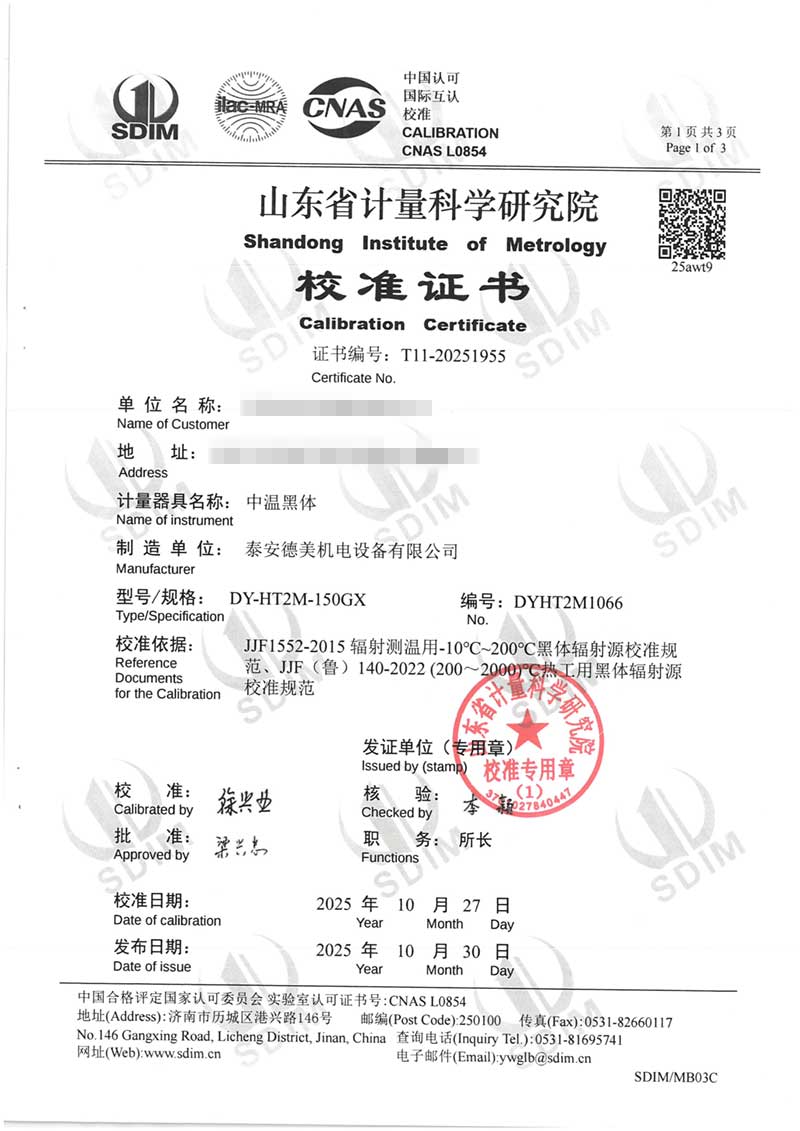 中溫黑體(室溫+5~400℃)校準證書(shū) 2025-11-5 本文被閱讀 18 次