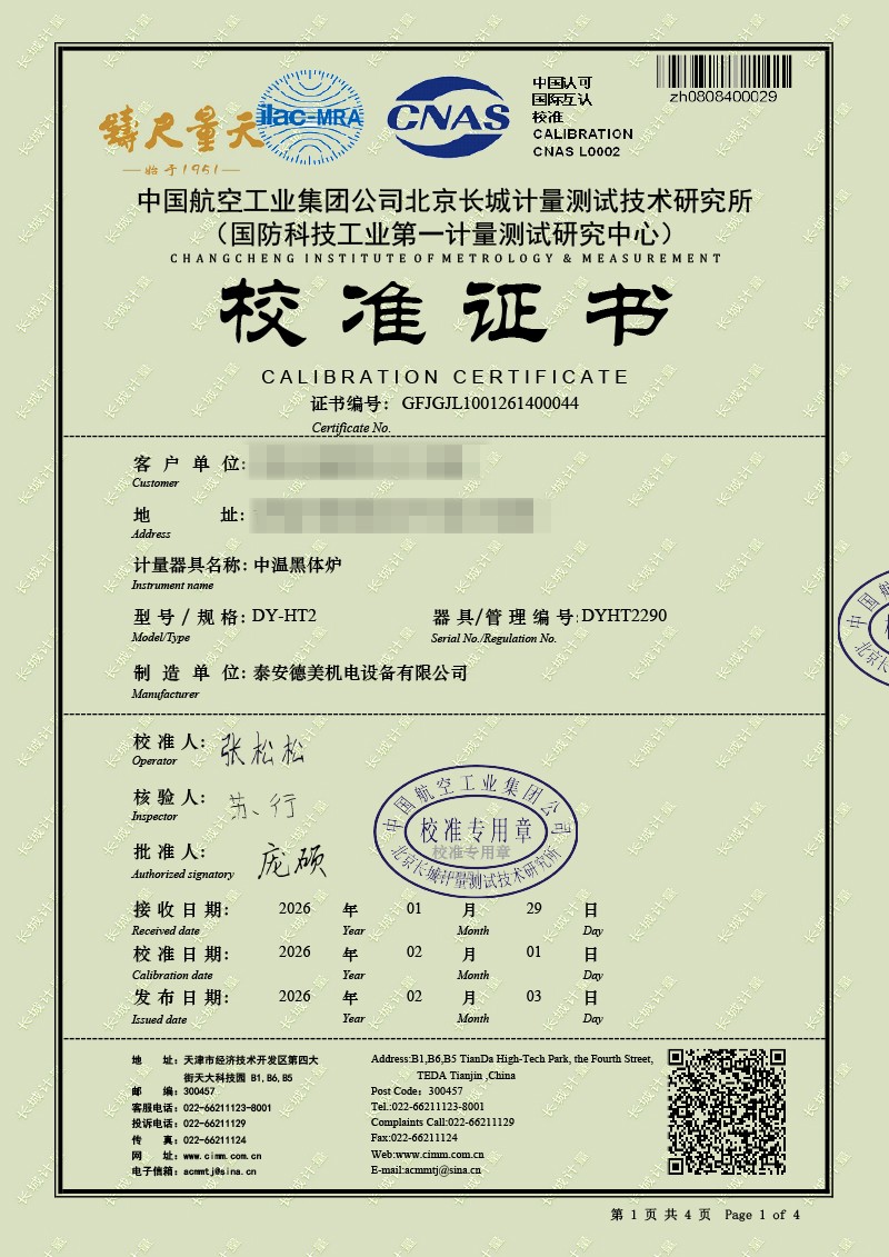 中溫黑體爐-校準證書 2026-2-11 本文被閱讀 57 次
