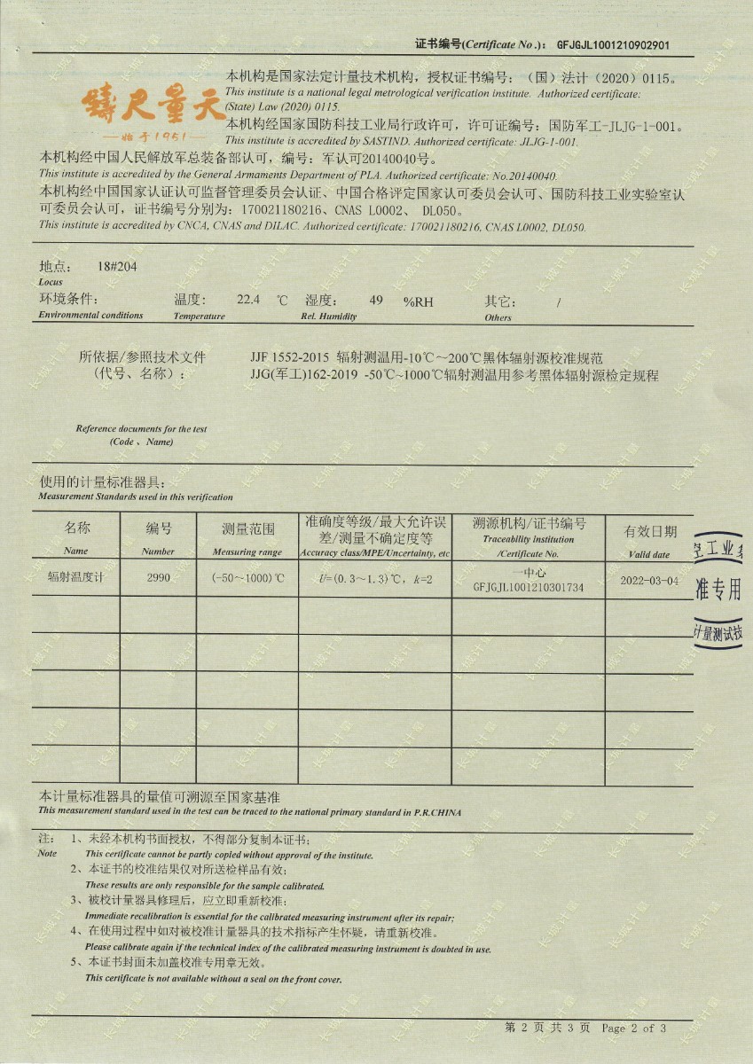 上一條:四川校聯(lián)計量檢測有限公司-黑體輻射源下一條:溫濕度檢定箱(-5~65℃)校準證書(shū)