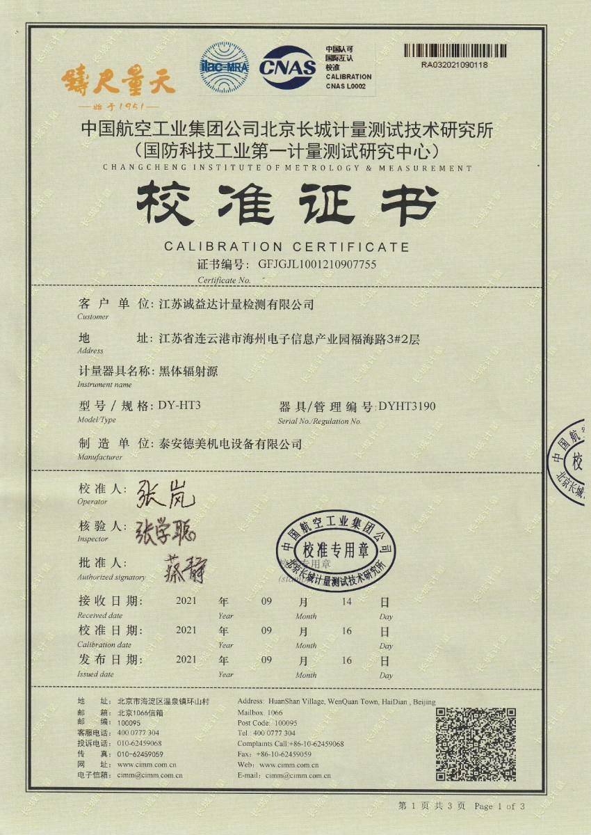 江蘇誠益達計量檢測有限公司-黑體輻射源 2021-9-29 本文被閱讀 15186 次