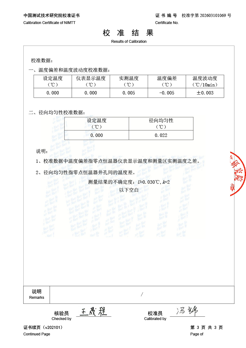 零點恒溫器-校準證書 2026-3-10 本文被閱讀 36 次