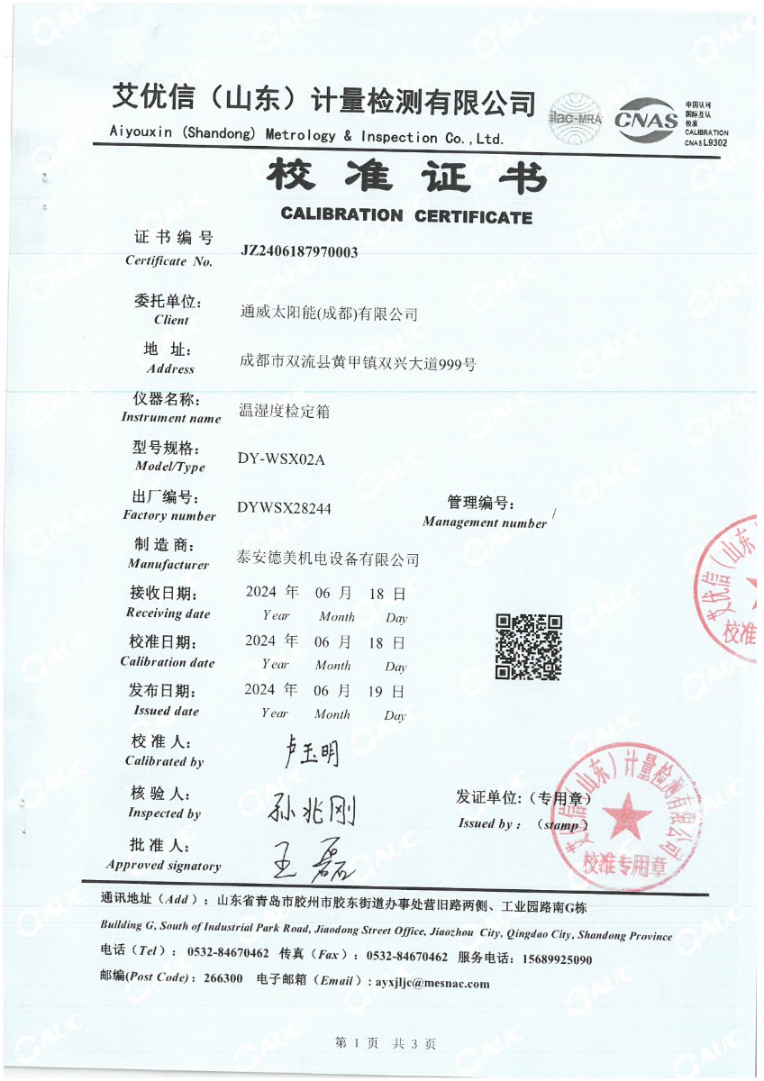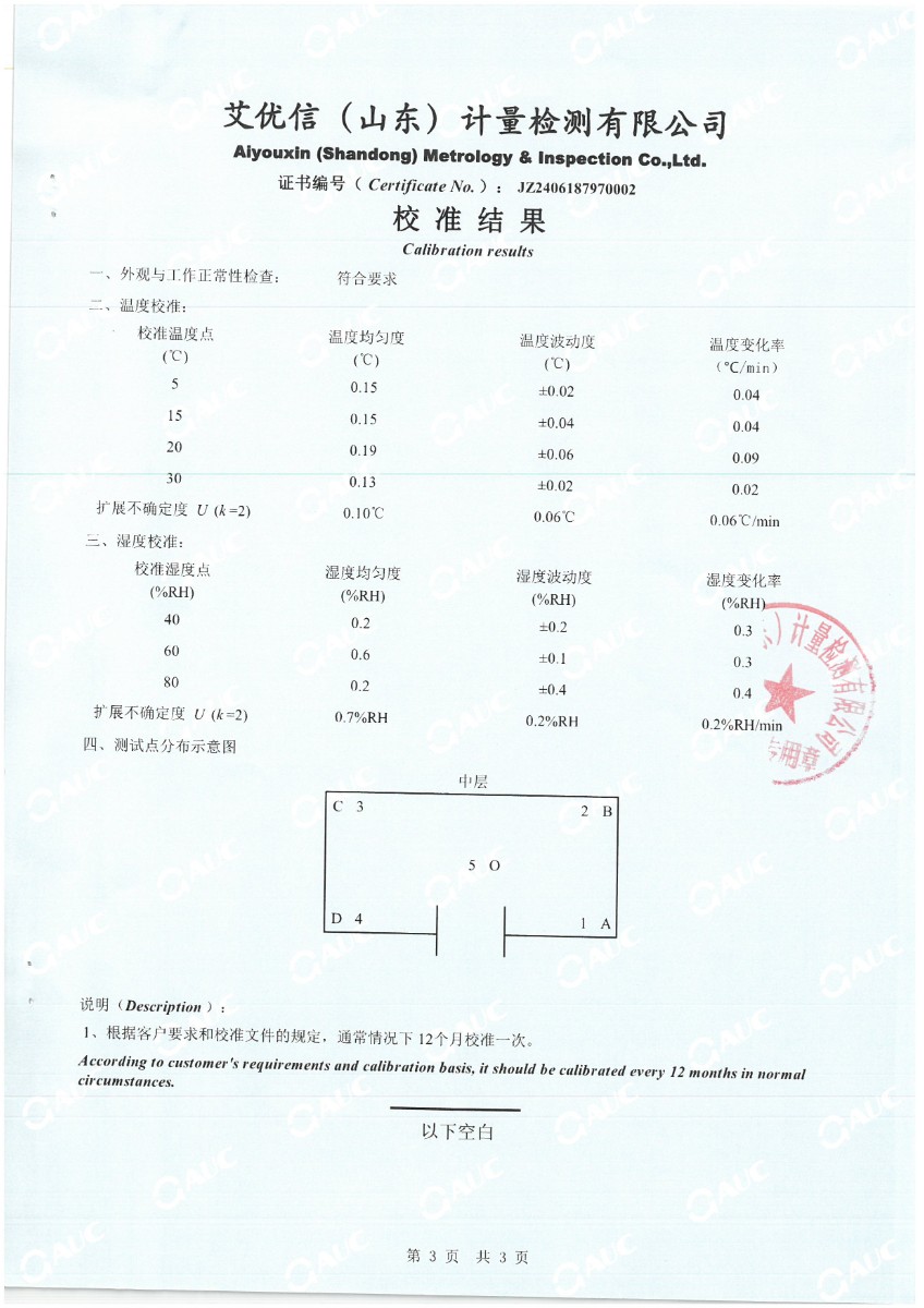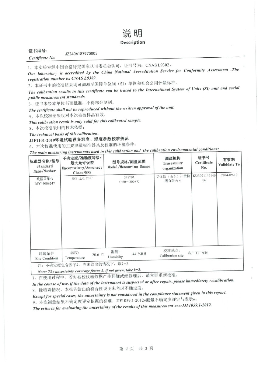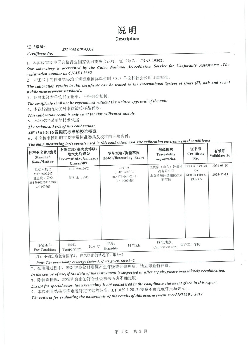溫濕度檢定箱(-10~65℃)校準證書(shū) 2024-6-25 本文被閱讀 6040 次