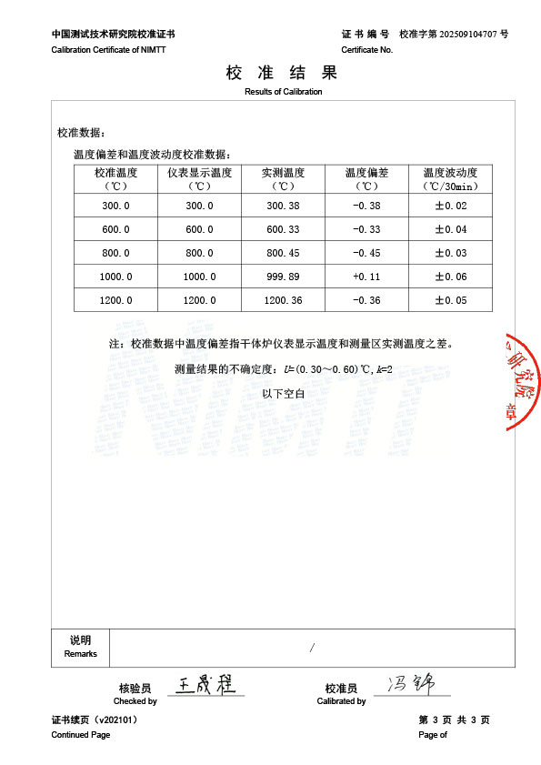高溫干體爐(300-1200℃)校準證書(shū) 2025-9-22 本文被閱讀 610 次