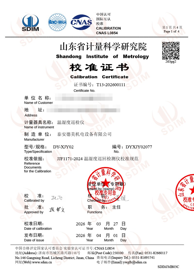 溫濕度巡檢儀-校準證書 2026-4-7 本文被閱讀 36 次