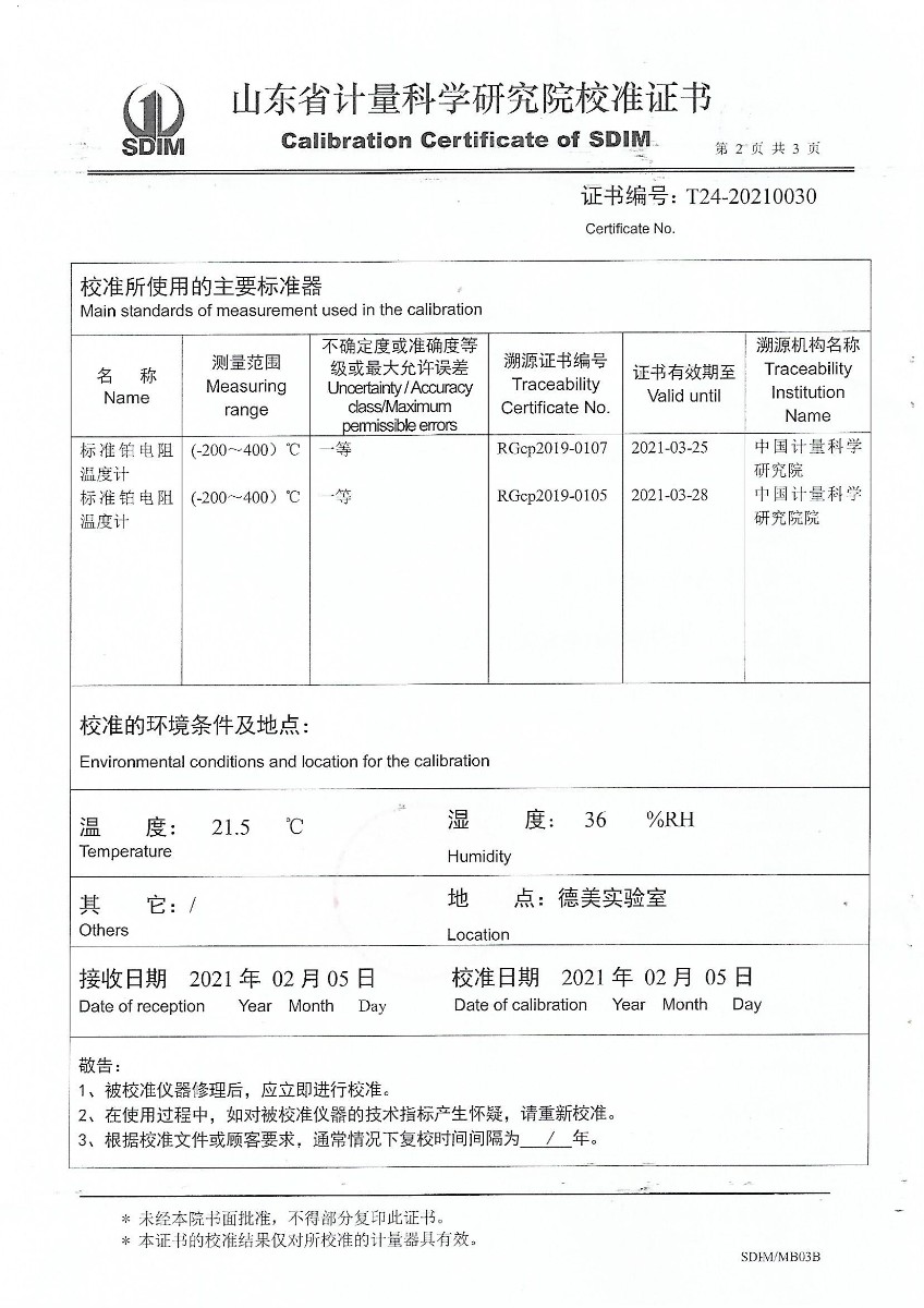 上一條:黑龍江華馨檢測科技有限公司-溫濕度檢定箱下一條:便攜式干體爐(-30-150℃)校準證書(shū)