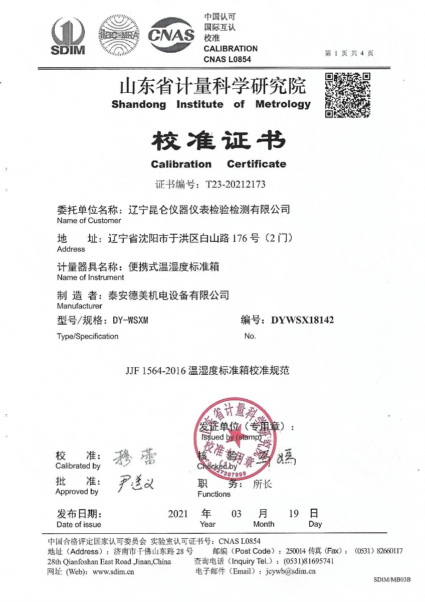 | 上一條:北京市基典恒校準技術(shù)研究所有限公司-溫濕度檢定箱 | 下一條:便攜式干體爐(-30-150℃)校準證書(shū) |
