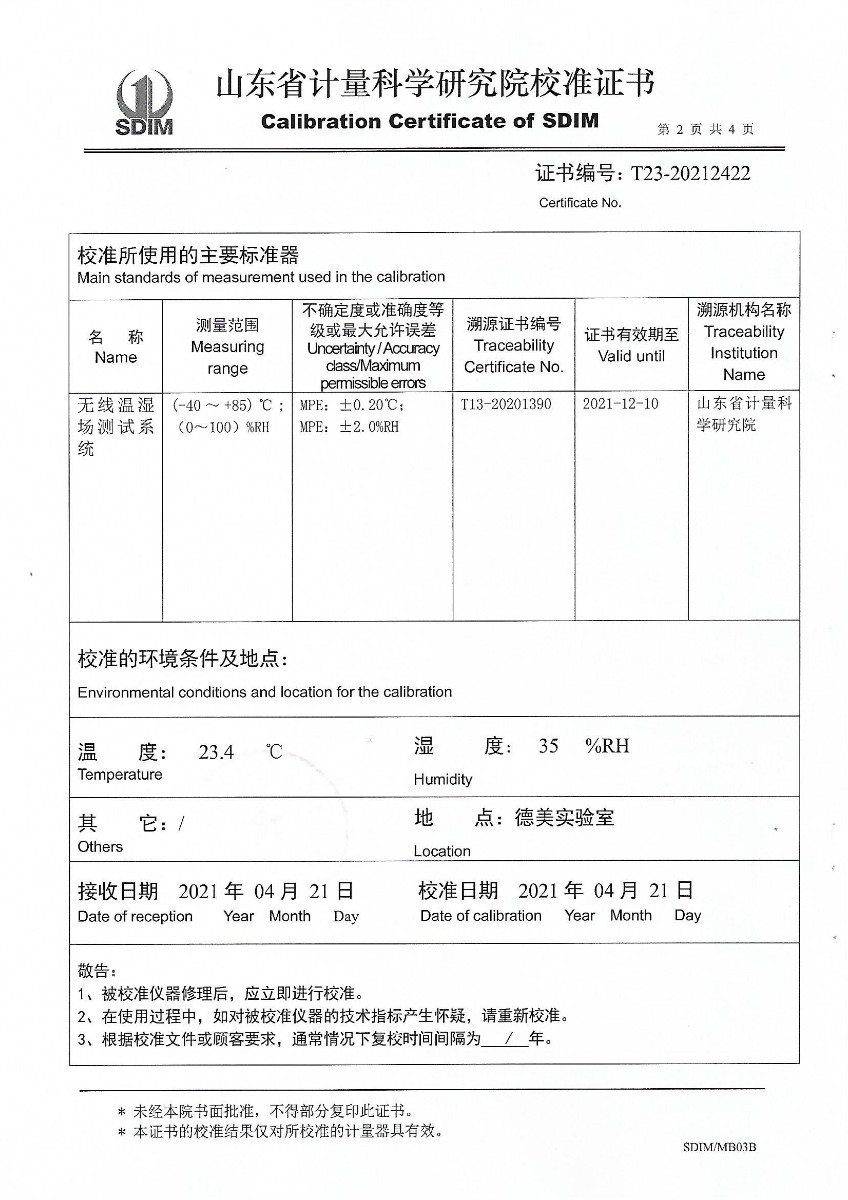 | 上一條:貴州中量計量測試檢測有限公司-冷鏡式露點(diǎn)儀校準證書(shū) | 下一條:便攜式干體爐(-30-150℃)校準證書(shū) |