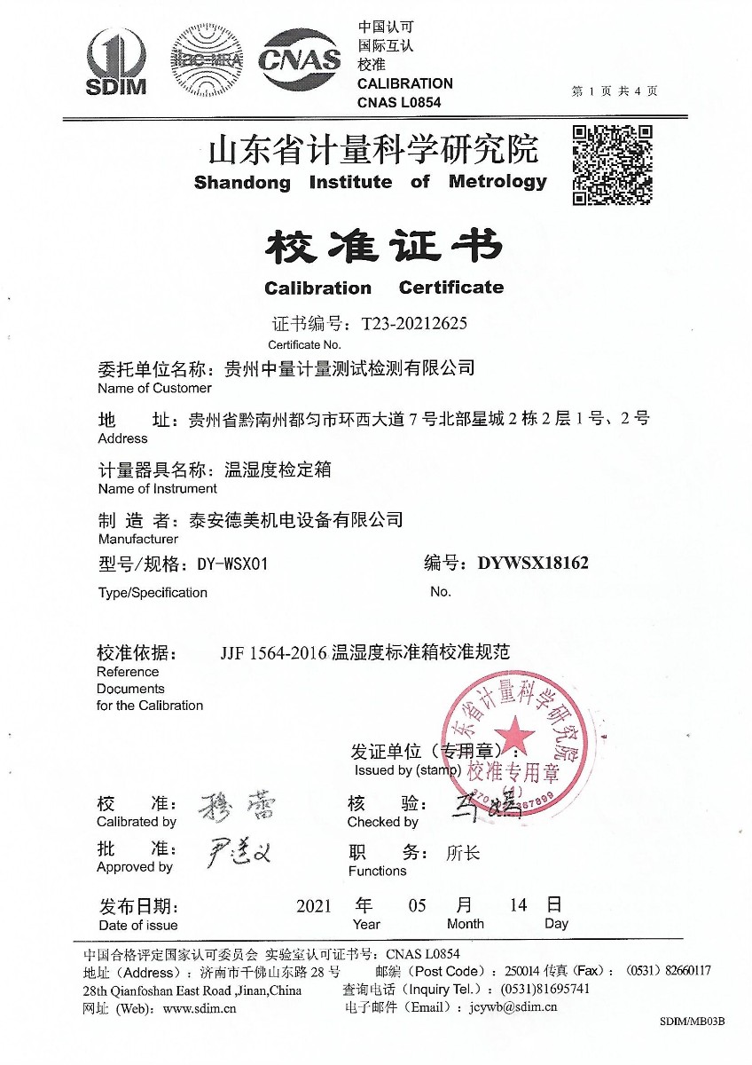 貴州中量計量測試檢測有限公司-溫濕度檢定箱 2021-5-22 本文被閱讀 14548 次