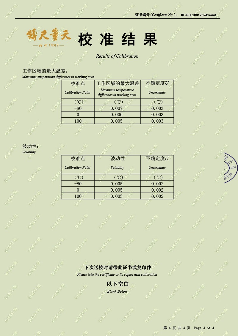 高精度制冷恒溫槽(-80~100℃)校準證書(shū)