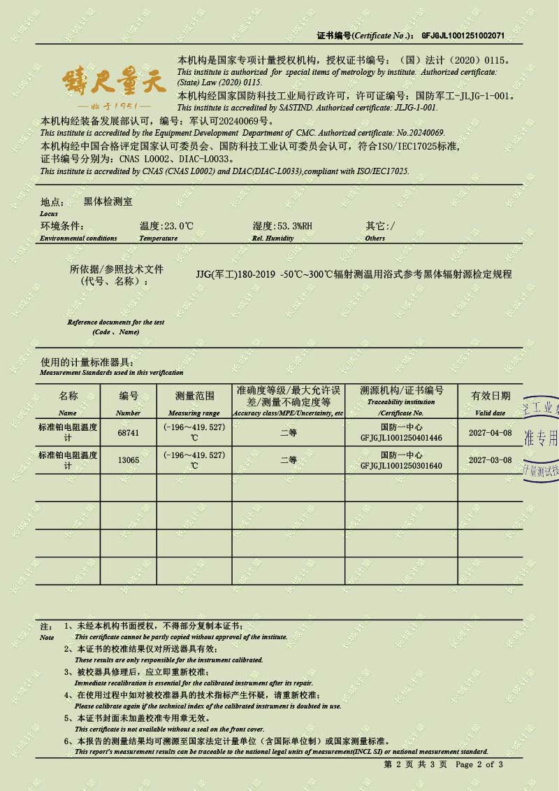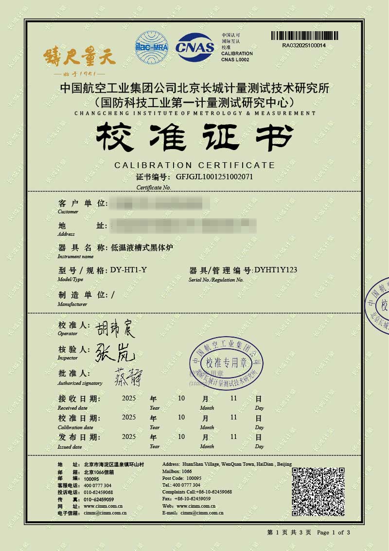 低溫液槽式黑體爐(-40-100℃)校準證書(shū) 2025-10-30 本文被閱讀 22 次