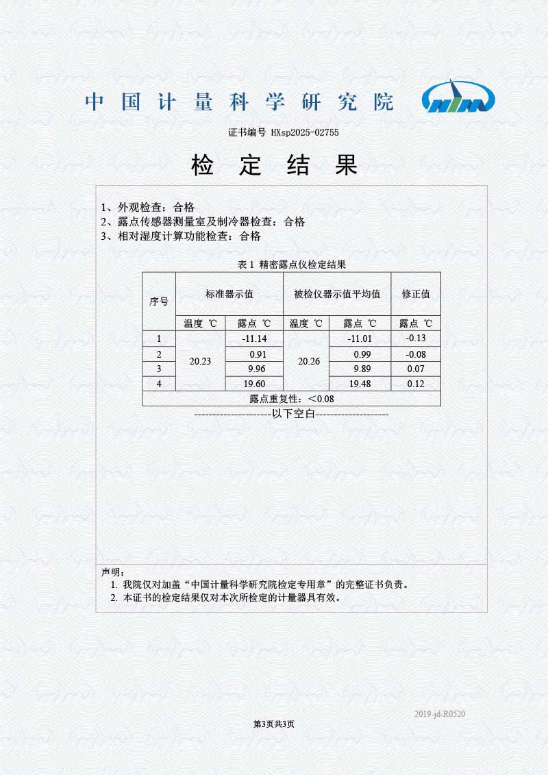 露點(diǎn)儀檢定證書(shū)
