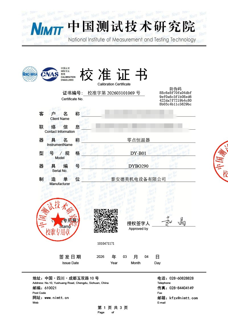 零點恒溫器-校準證書 2026-3-10 本文被閱讀 36 次