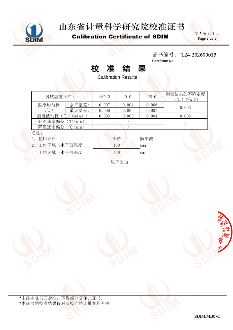 | 上一條:高精度制冷恒溫槽(-30~95℃)校準證書(shū) | 下一條:水三相點(diǎn)瓶?jì)鲋婆c保存裝置校準證書(shū) |